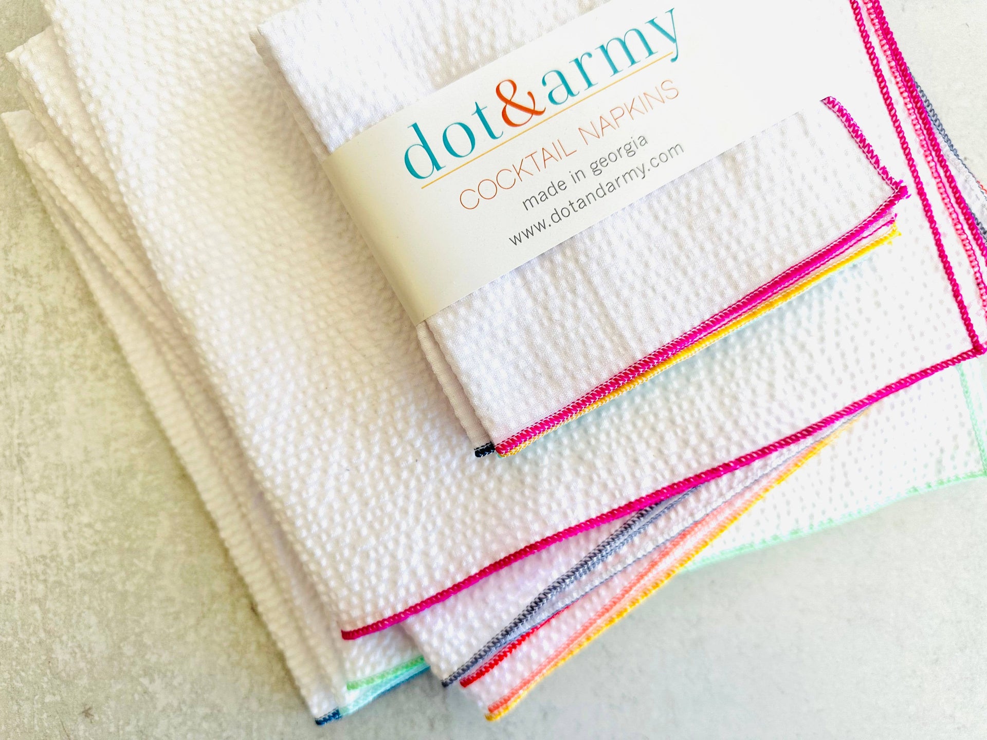 Available in both cocktail and dinner sizes, make these cheerful napkins even more unique with you monogram or initial.