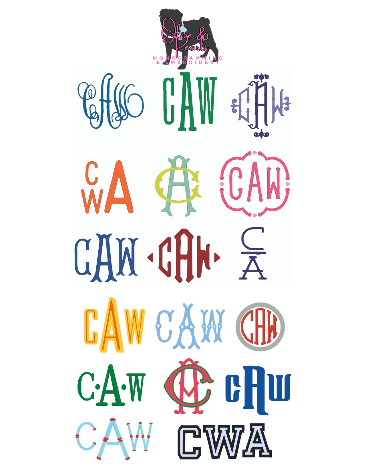 Discovering the ideal monogram is effortless with our extensive array of fonts and designs. And color? We offer a spectrum that spans the full range of the rainbow!