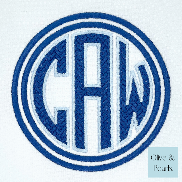 We have paired this towel with our 3" Circle font in a Herringbone pattern and satin stitch outline.