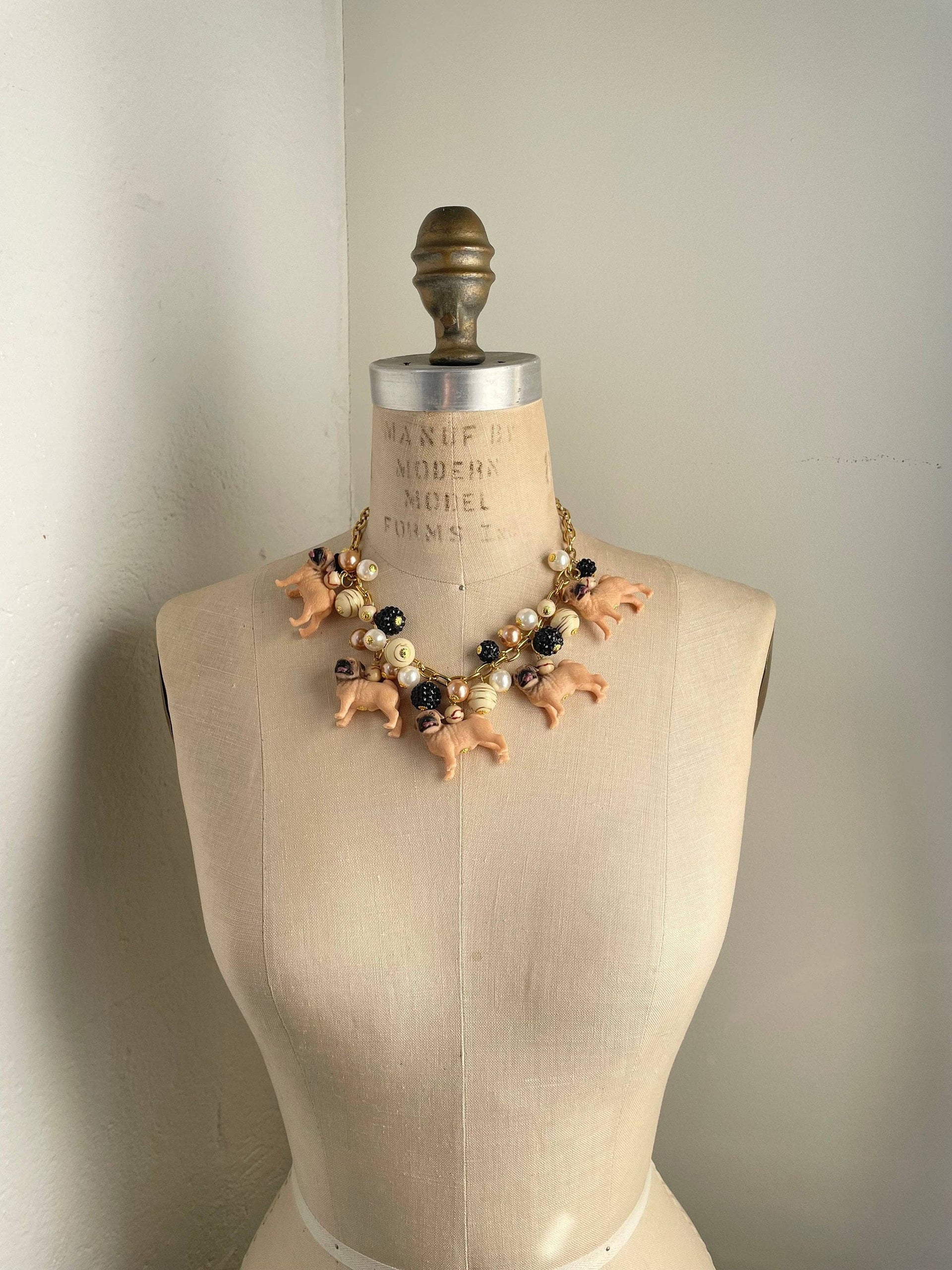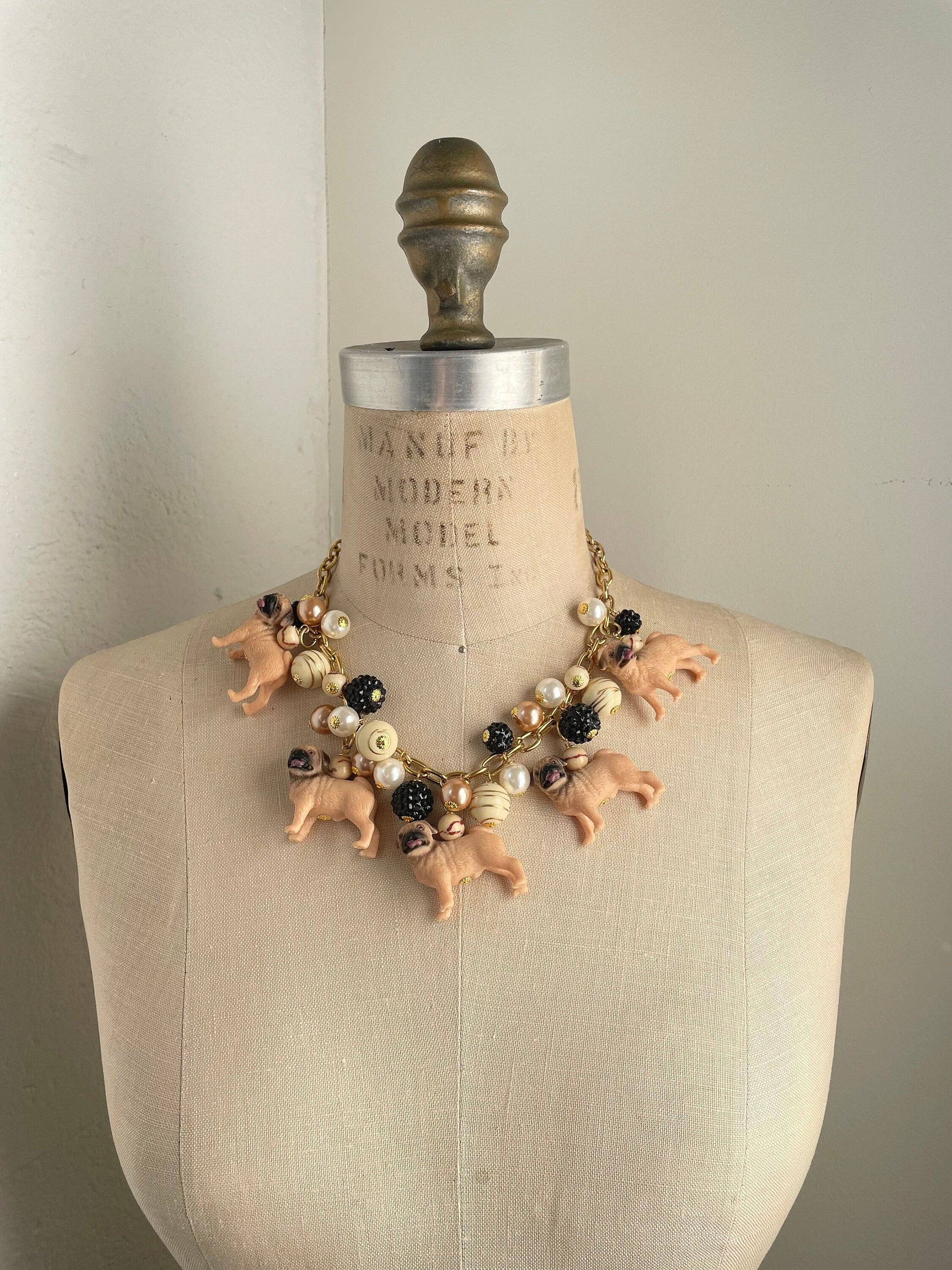 Pugs and beads are wire wrapped to perfection on our signature brass-plated steel chain,18"L with a 3" extension.