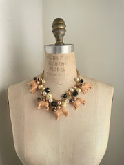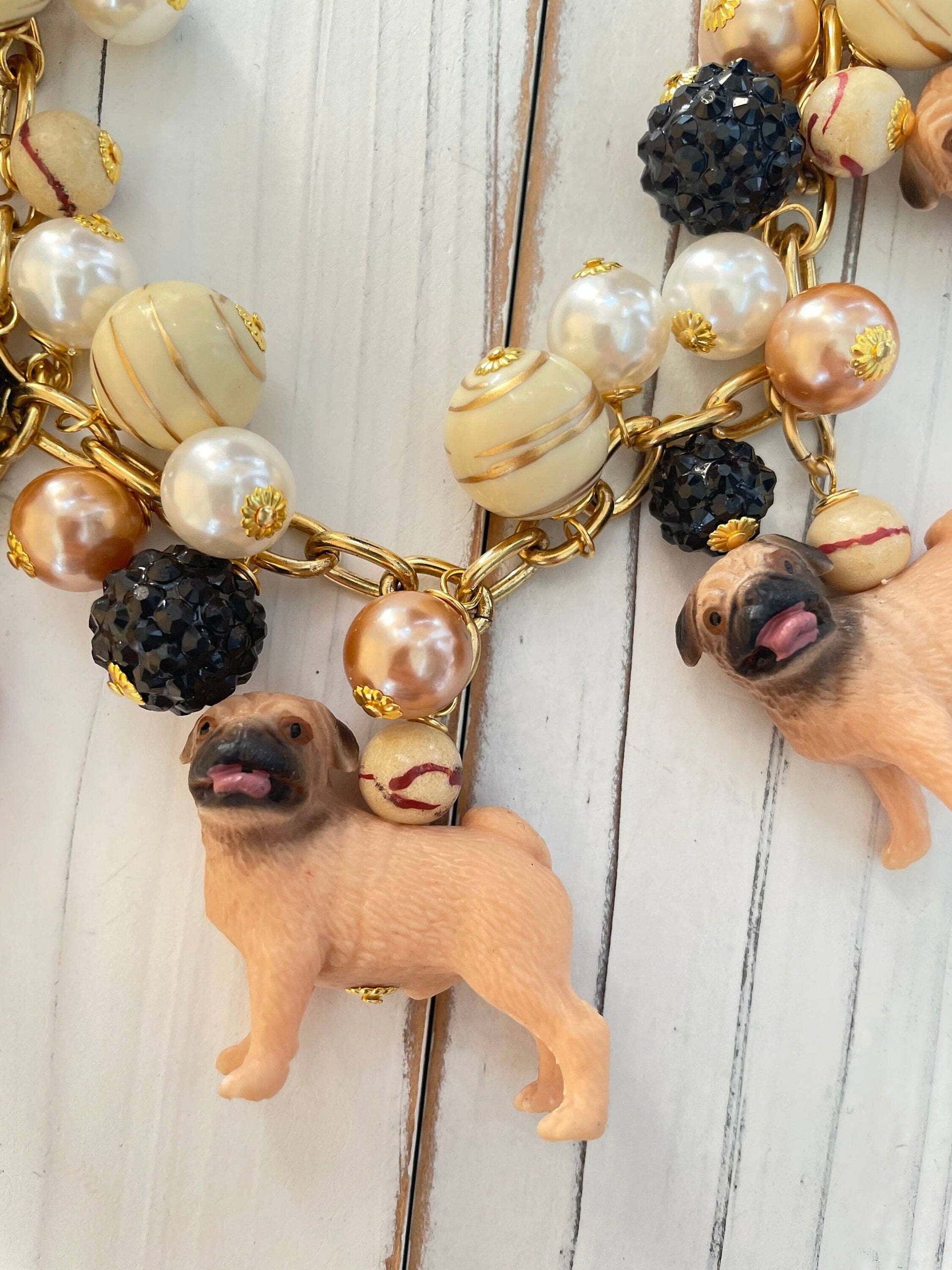 It's pug overload with this pug necklace! Features 5 pugs and an assortment of beads in black, cream, and pearl color scheme.