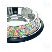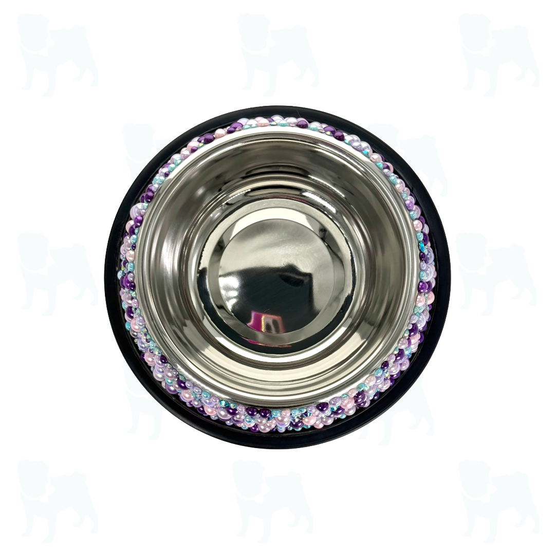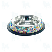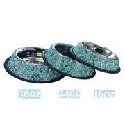Welcome to the world of Pet Bowl Bling! If you are really ready to take your bling to the next level, then you are going to Love this pet bowl! The bowl itself is a 4-cup capacity, double walled, insulated, stainless steel, dog & cat bowl. This bowl is non-skid and features a rubber bottom. We add the glitz and glam one crystal at a time. Each by hand! We have customized twelve dazzling color combinations to choose from, each with their own unique appeal. These are definitely a standout when it comes to pet bowls!