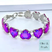 The Monique Jeweled Dog Collar is a new level of sparkling sophistication. We have designed this particular collar for larger sized dogs, but other variations are also available. This collar features 16mm sized crystal hearts that are spaced between two singular pearl beads. The hearts are set in opposite direction to make for a symmetrical finish. Beautiful, sturdy, and unique, this collar is a real "head turner."