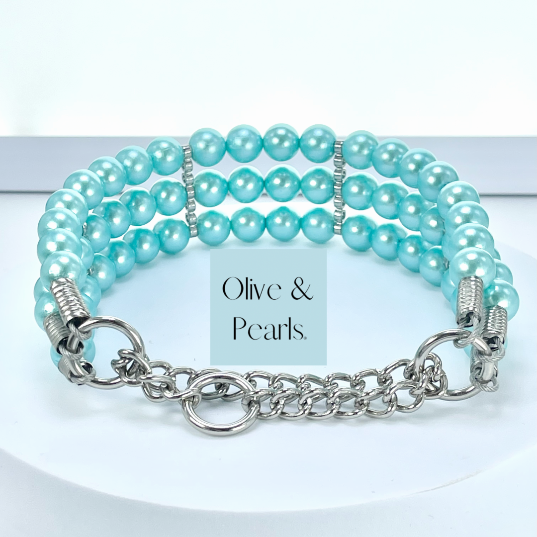 *This collar is made with lighter aqua colored pearls