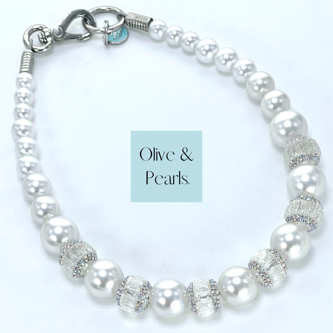 •Every Olive & Pearls collar is made with 300lbs of tensile strength are is secured using a heavy duty swaging tool for extra strength and security