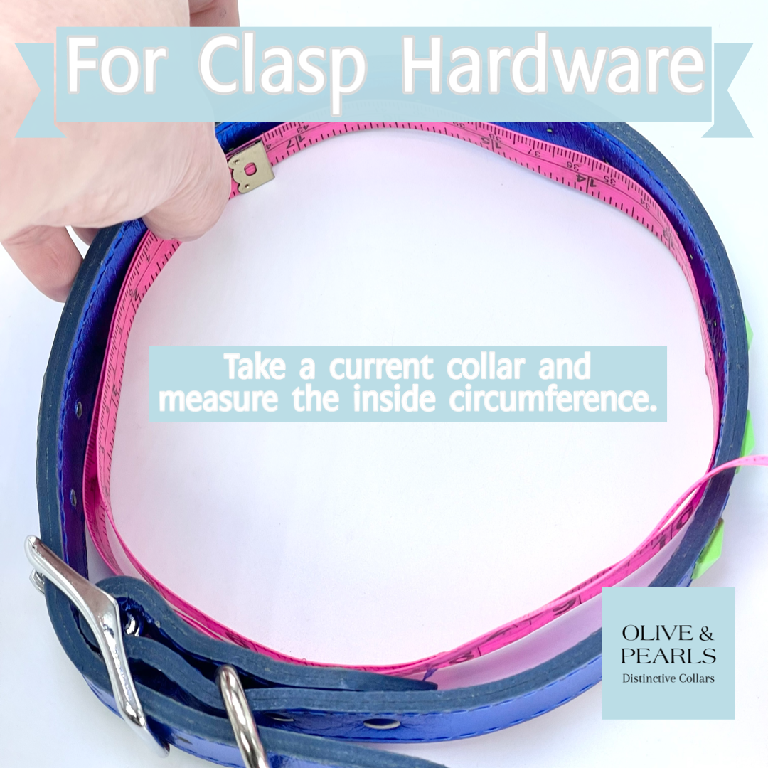 -To measure for the CLASP Hardware collars, measure the INSIDE circumference of your pet's current collar. Be sure to close/snap the collar before measuring. Do not measure end to end. This will result in your collar being too big.