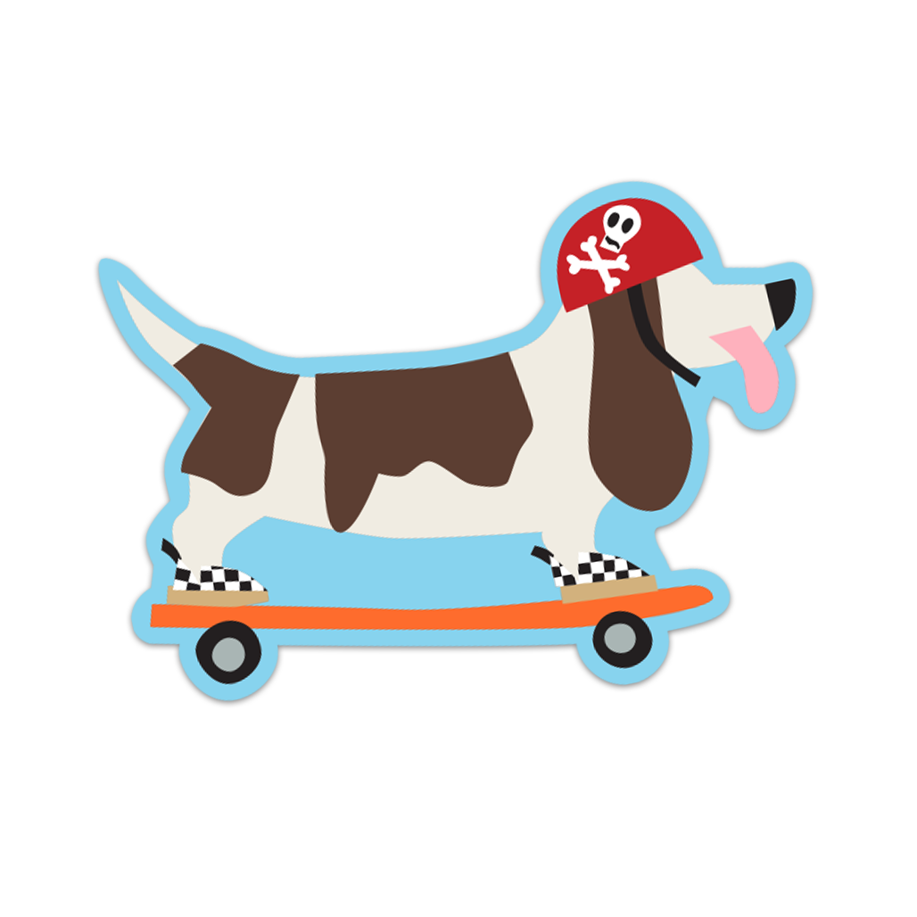 Vinyl Skater Dog Sticker laminated to protect from scratching, rain and sunlight. Perfect for cars, laptops, water bottles, and more!