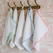 Not all bath hand towels are created equal. Many lose softness or shrink after a few washes, but Lotus Linen pieces are woven from high-quality combed cotton that resists wear while staying plush. The scallop piping adds a boutique-inspired edge, elevating them beyond simple decorative linens into versatile luxury essentials.