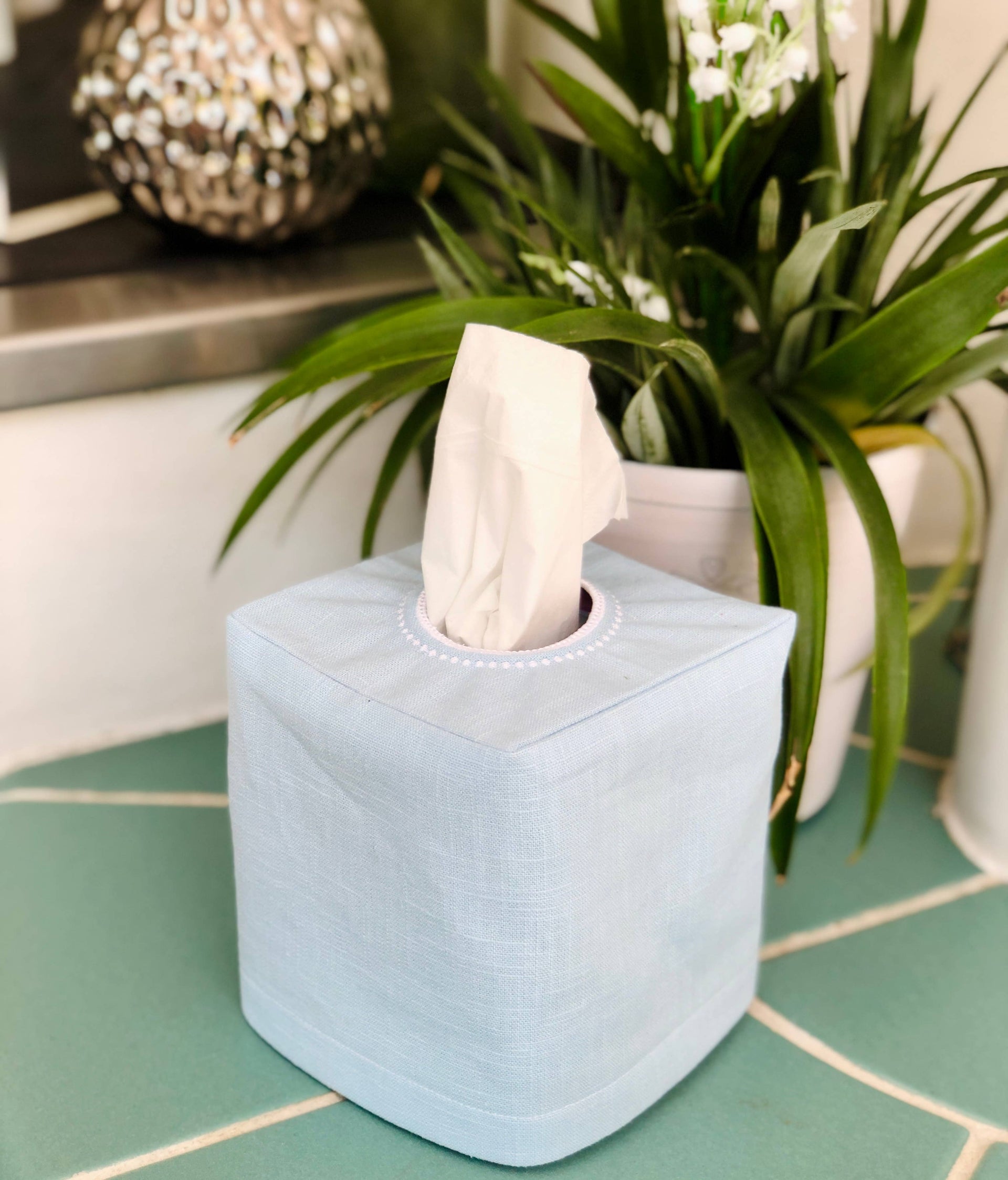 Natural Linen Tissue Box Cover with Embroidered Opening